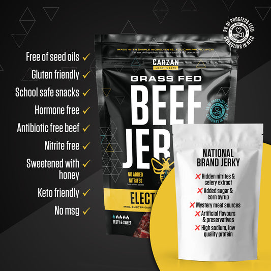 All Carzan jerky is made in Saskatchewan, Canada, using Canadian beef and crafted to meet federal food safety standards.