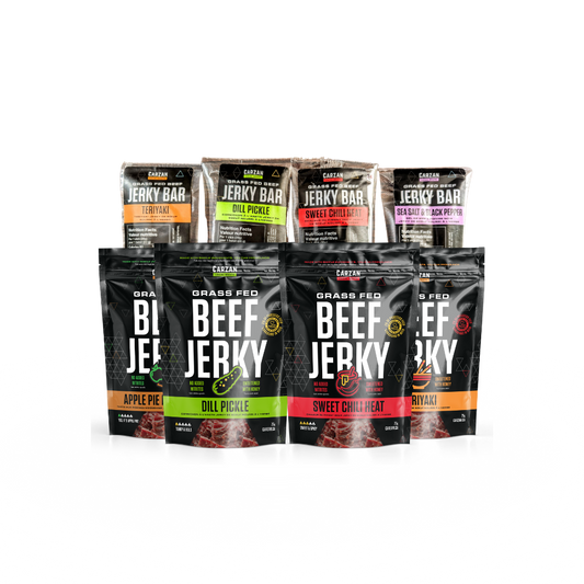 Carzan jerky is high in protein, with exact amounts varying slightly by flavour and format. On average, you can expect around 10 grams of protein per serving. Please refer to the nutrition panel on each product page for specific details.